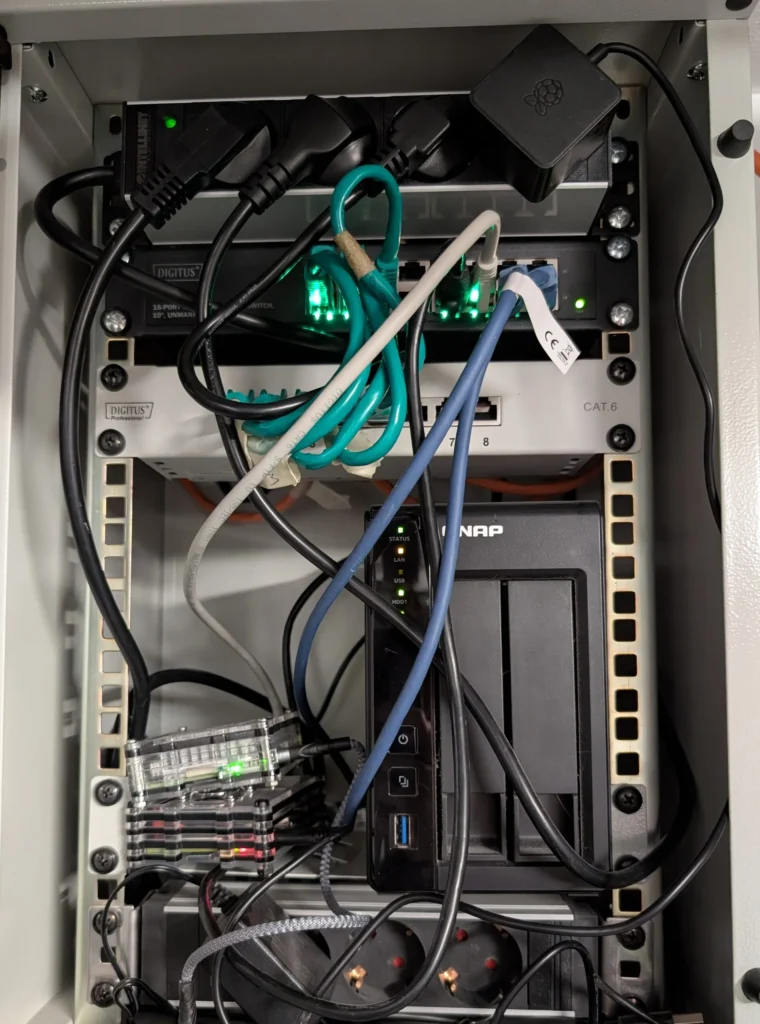 Anhand unseres kleinen Teams beschreiben wir eine kompakte Infrastruktur im 10-Zoll-Netzwerkschrank*. Ein solcher Netzwerkschrank benötigt wenig Platz, sorgt für Ordnung, schützt die Hardware und ist in Verbindung mit den beschriebenen Raspberry Pi völlig ausreichend.